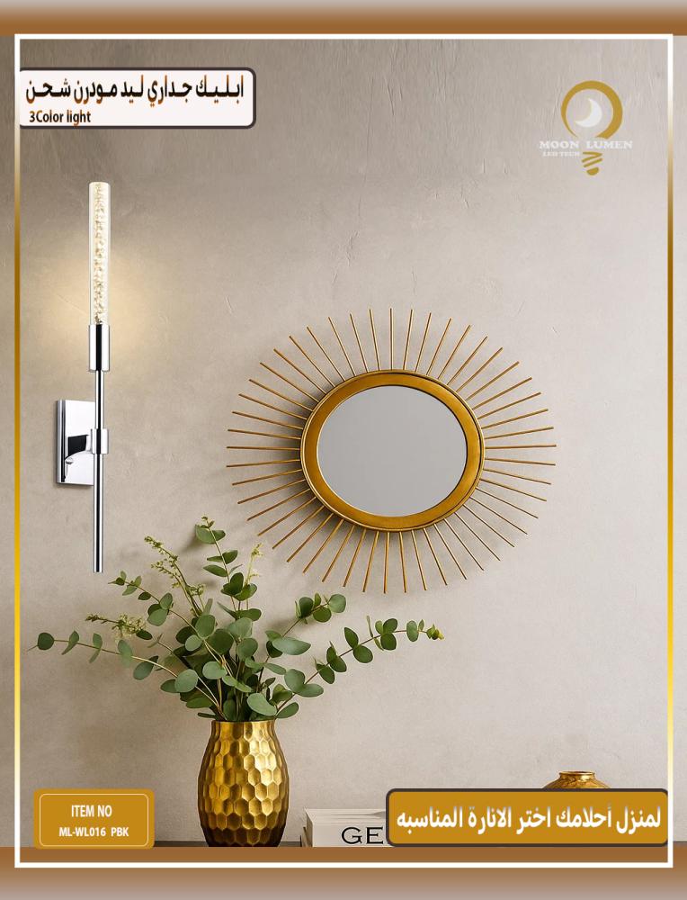 أبليك جداري ليد مودرن شحن – 3 ألوان إضاءة (ML-WL016 PBK)