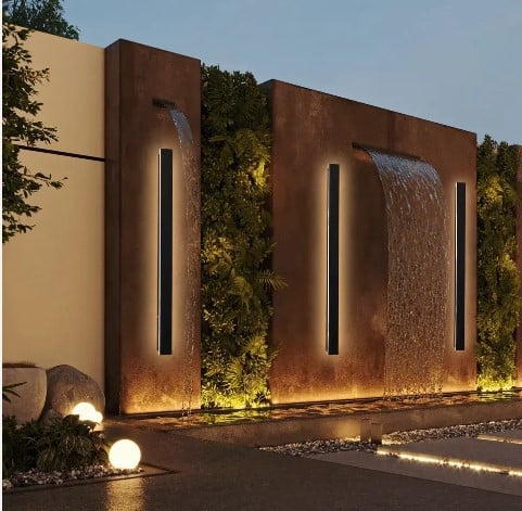 استمتع بأجواء ليلية ساحرة وتصميم رائع في مساحاتك الخارجية مع إنارة جدارية خارجية طولية مربعة باللون الأسود تميز المنظر بالهدوء والراحه