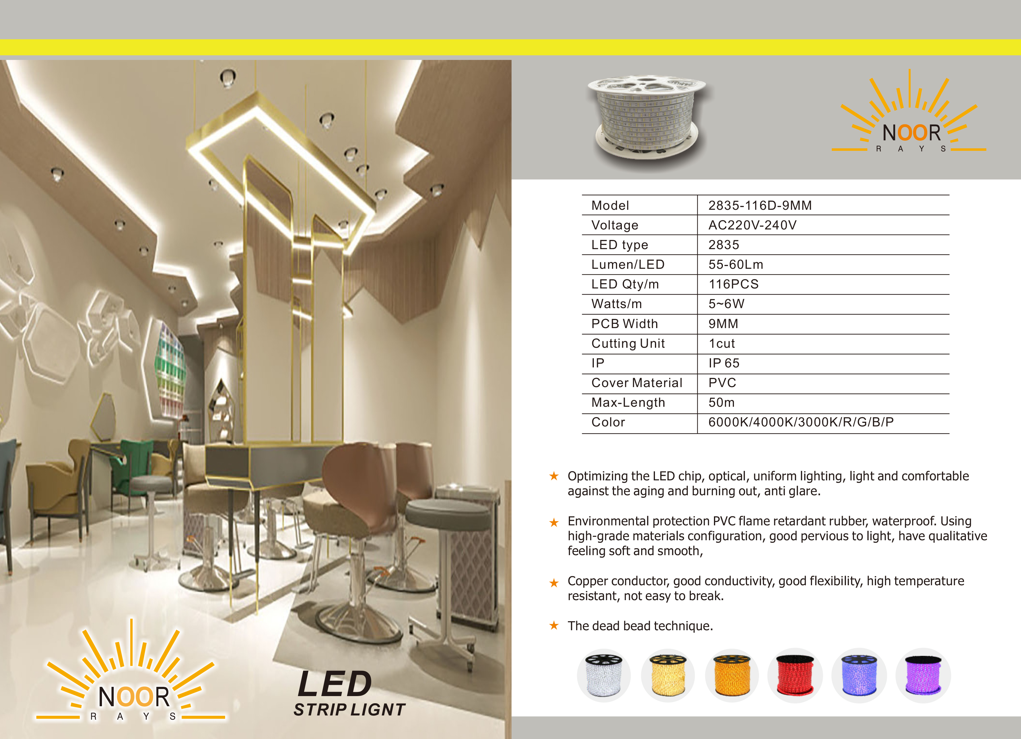 - سهل التركيب مع اتصال مباشر 220 فولت، مع موصل واحد، يمكن قصه لكل متر