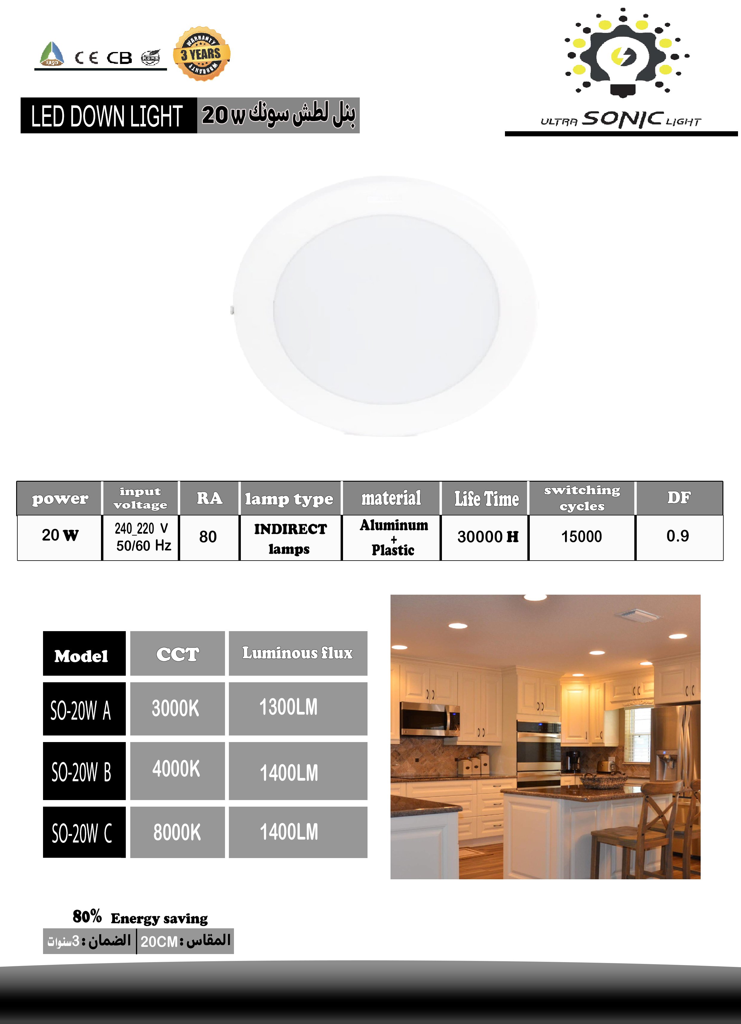 مميزات كشاف بنل لطش سقف دائري 20W / 20CM: