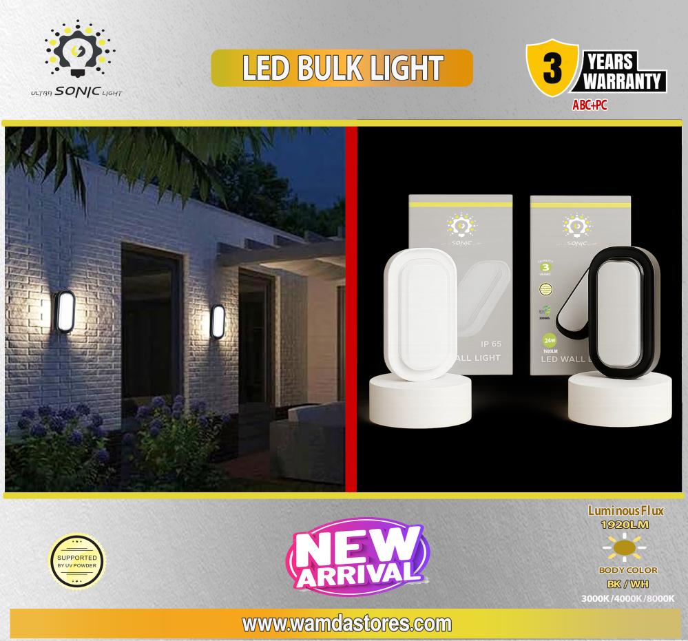 اضف لمسة من الأناقة والعملية إلى واجهة منزلك أو حديقتك مع كشاف الجدار المميز من Sonic Light – LED Bulk Light. تصميم عصري انسيابي وإضاءة قوية موفرة للطاقة، مقاومة للعوامل الجوية، مما يجعله الحل المثالي لإضاءة المساحات الخارجية بكفاءة وأناقة.