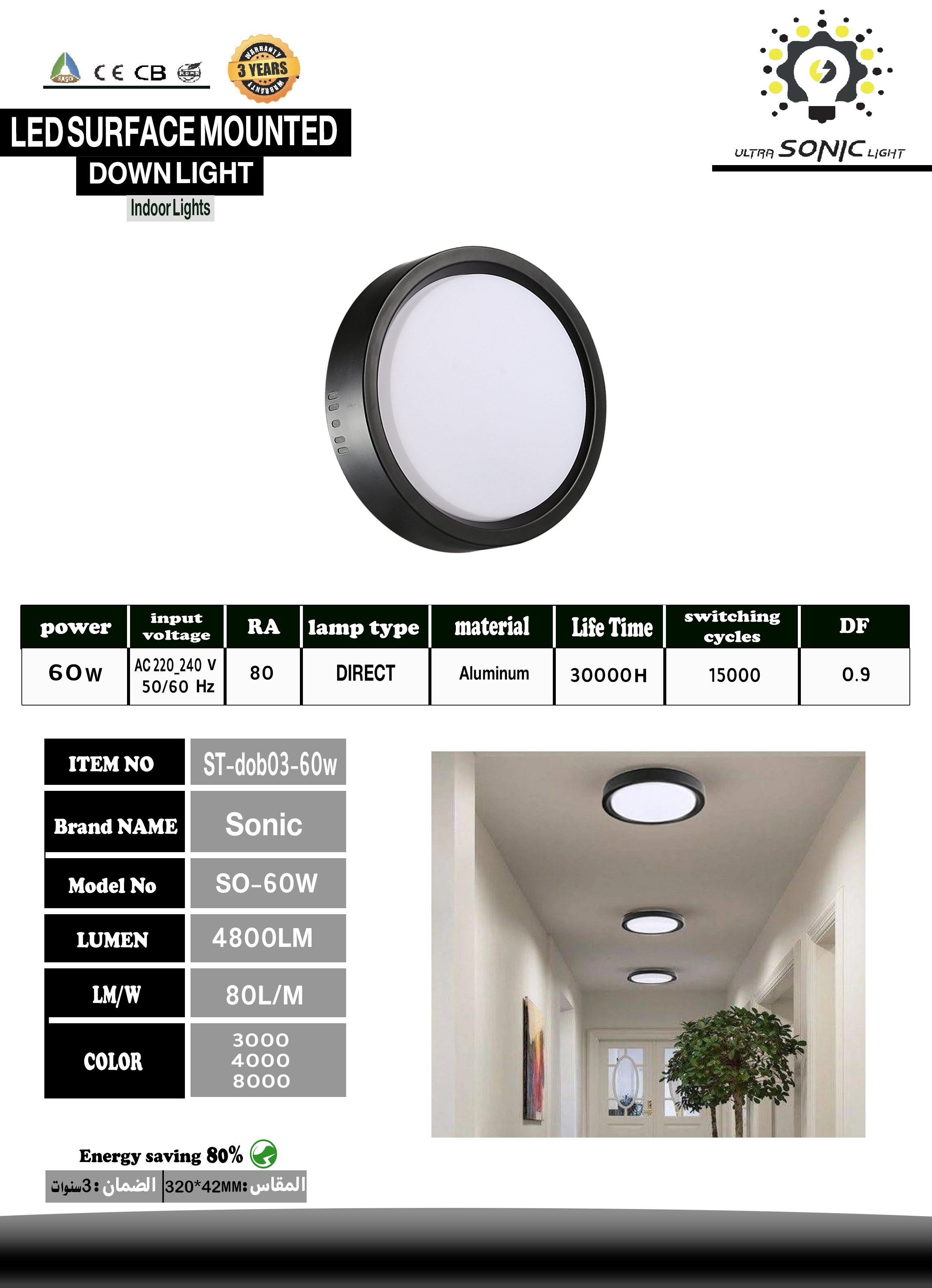 كشاف لطش سونيك 60 وات30 سم فريم اسود :